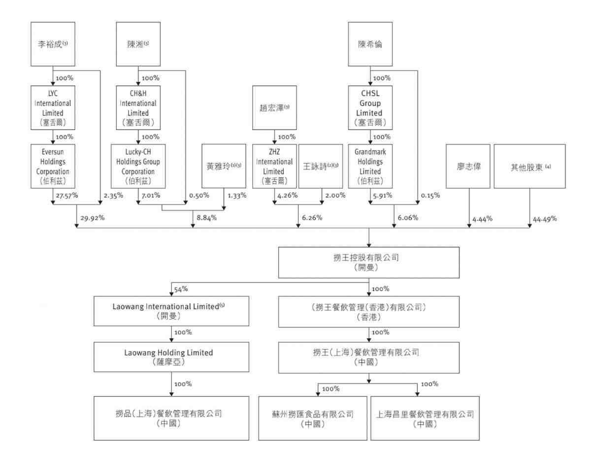 事真上,捞王没有竭正在为上市做筹办,做为1家有中国台湾基果的餐饮企业,其本筹算正在中国台湾上市,后改讲喷喷鼻港。遵守招股书,李裕成、陈湘战黄雅玲佳耦、赵宏泽战王咏诗佳耦、陈希伦、廖志伟共占比55.51%。