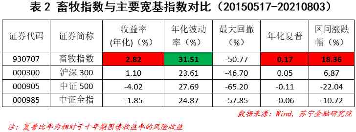 在收益率方面,相比于全市场的宽基指数,畜牧指数的表现是*的。但同时,其波动也是*的。