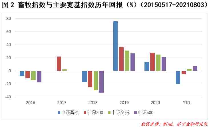 从历史看,从畜牧指数发布的2015年5月17日至2020 K h1年8月3日,畜牧指数累计涨幅18.36%,同期沪深300、中证500及中证全指涨跌幅分别为6.87%,-22.04 %和-10.72%。畜牧指数表现远远优于宽基指数。