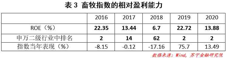 可以看到,在猪周期上行的阶段,行业{ / ; & } a呈现出了极强的盈利能力,指数在当年的表现也基本上好于市场平均水平。