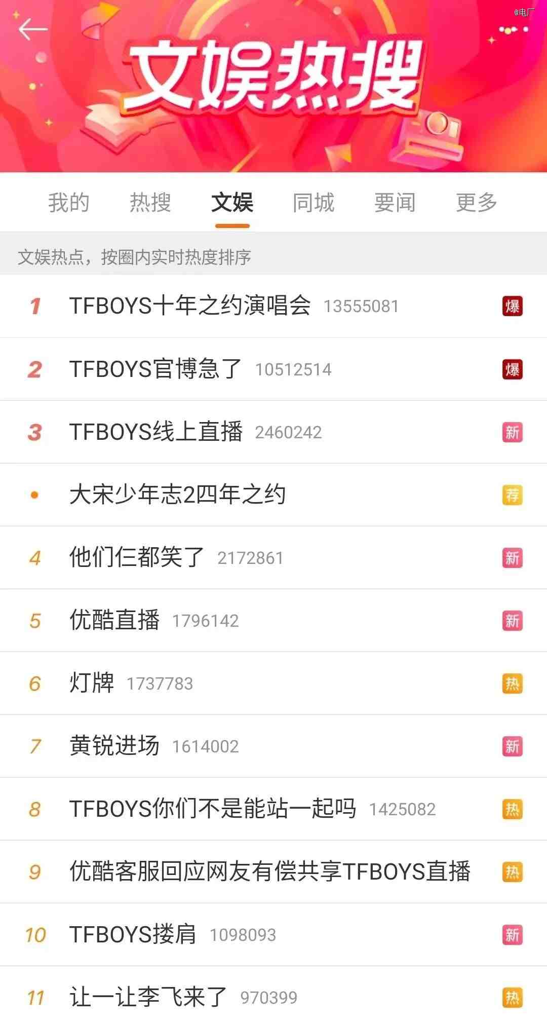 在穿插着回忆的三个小7 k V时里,“TFBOYS十年之约演唱会”始终占据着微博m \ |热搜榜首位,并几乎包揽了k 0 e a整个文娱热搜榜。TFBOYS 2017年在《快乐大本营》上写给十年后自己的信,出人意料地得到了解锁;十周年仪式蛋糕在三人的尽力托举下散落一地,却造就了远比看2 X , +提词器演出鲜活的几分钟;单人表演的环节,有: | s H ] = { C头顶王冠,有脚踹大门,i 3 o也有喜庆的大花轿——从《青春修炼手册》开始,以《Heart》结束,每一首歌曲都是对过往十年的注脚。旋律依旧,少年的声线却已成熟,那些歌词在成长经历的映照下,仿佛等待被见证的预言。一位在演唱会现场的粉丝q [ 0 j T告诉电厂:“虽然很累,但只有来到现场的人才懂得,即使又哭又笑,还是太开心了!”