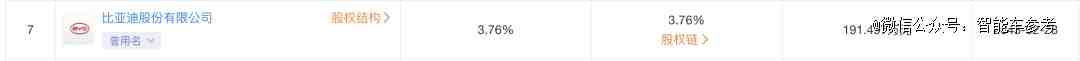 天眼查网站显示,比亚迪的认缴出资额为191.497万,持股比例达到3.76%。