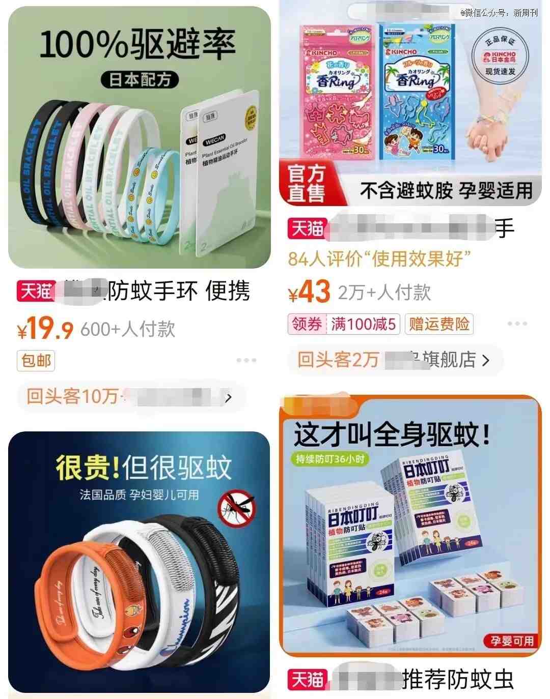最近几年,几乎每年夏天都有报道曝光不同品牌驱蚊手环、驱蚊贴的不合规之处。例如,电商平台上许多避蚊手环的宣传中明确出现了“驱蚊”“防蚊神器”等关键词,但产品包装的名称实际却为“香氛防护手环”。