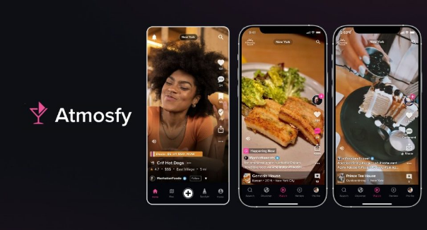 Atmosfy不是一款简单的短视频应用,在这款软件里,用户能够通过快速浏览短视频,来发现身边的餐馆、酒吧、旅馆等,其模式类似于TikTok+Yelp(美国版大众点评)的融合。