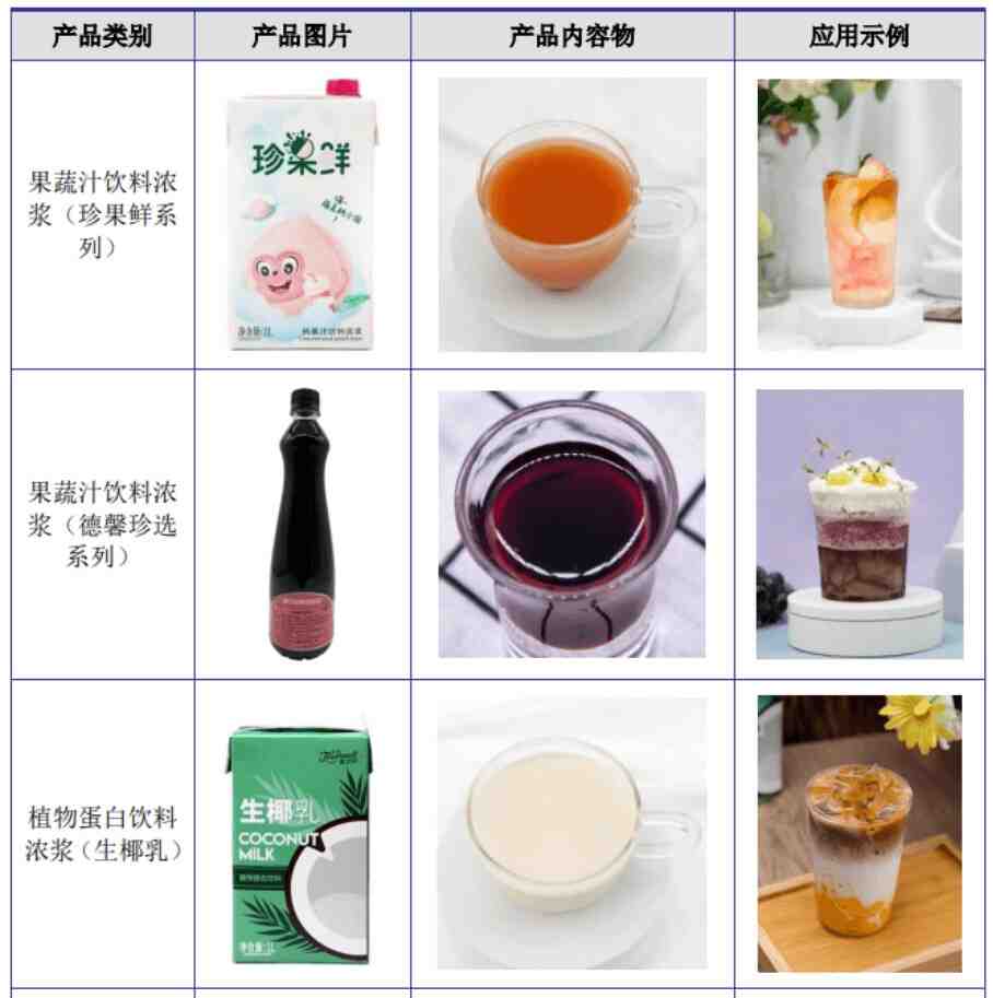 具体来看,报告期各期,饮品浓浆、风味糖浆产品是德馨食品的主要收入来源。