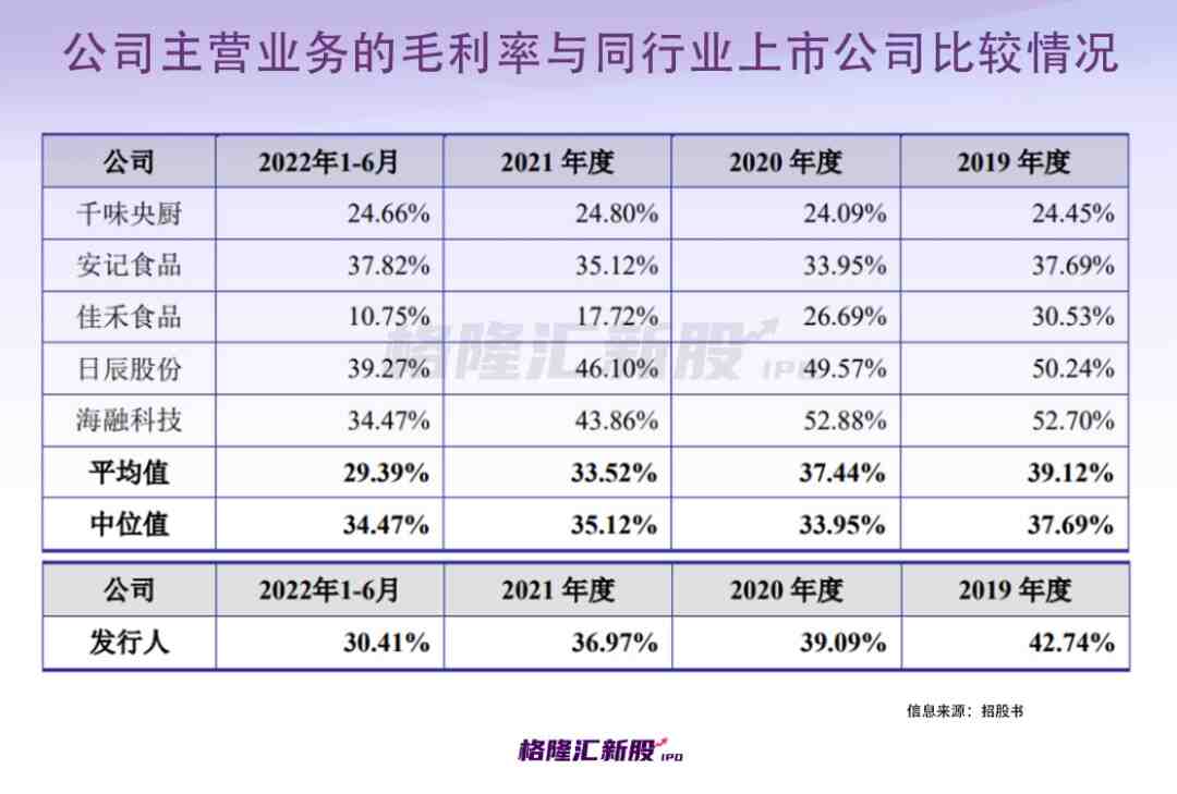 值得注意的是,报告期内,德馨食品的主营业务毛利率分别为42.74%、39.09%、36.97%、30.41%,呈现逐年下降之势,主要受到市场需求、产品结构、平均销售单价、平均单位成本等因素的影响。