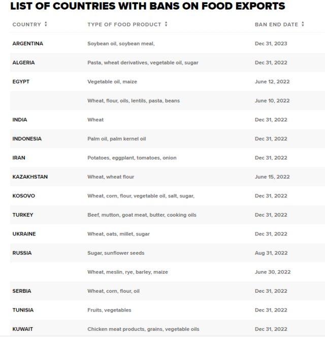 随着全球通货膨胀上升和对粮食安全的担忧不断加剧,许多国家也对其他粮食,包括葵花籽油、棕榈油、化肥和谷物等产品的出口实施了禁令。
