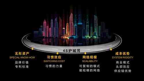 鲁秀琼的新消费课程《新消费修炼,穿越周期的成长》表示,企业真正的护城河是4个S:Special Know-How无形资产、Switching Cost习惯效应、Scalability规模化能力、System Rigidity成本优势。