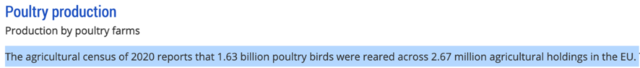 在欧洲地区,2021-2022年有37个国家扑杀了4,800万只家禽,是有史以来最大规模的禽流感疫情。不过2020年欧盟饲养了16.3亿只家禽,这两年全部死亡家禽数量占比也仅为3%,并不算大,似乎与市场印象中禽流感肆虐导致肉鸡产量大幅下滑不符。这可能和养鸡业的生产周期很短有关,一般只有两三个月,生产恢复较快。