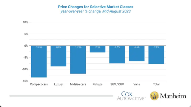 8月17日周四,美国汽车行业研究公司Cox Automotive公布了8月前15天的新数据,显示全美二手车批发价格略有上涨,这被市场认为是通胀可能粘滞的迹象。