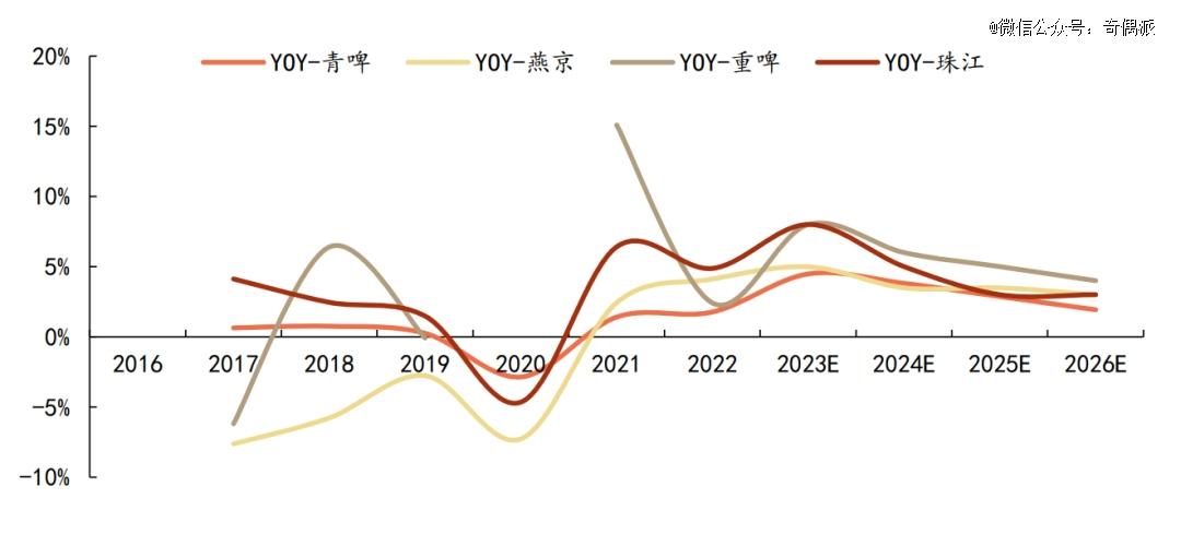 啤酒企业销量增速情况对比