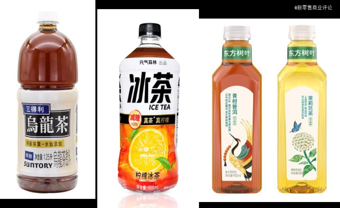 在需求端的推动下,商家纷纷开启了大包装策略。1.25L的三得利茉莉味乌龙茶、900ml减糖版元气森林柠檬冰茶,过去包装多为500ml及以下的东方树叶,也于今年年初推出了900ml的大瓶装,包含茉莉花茶和青柑普洱两种口味,市场售价在6~8元之间。