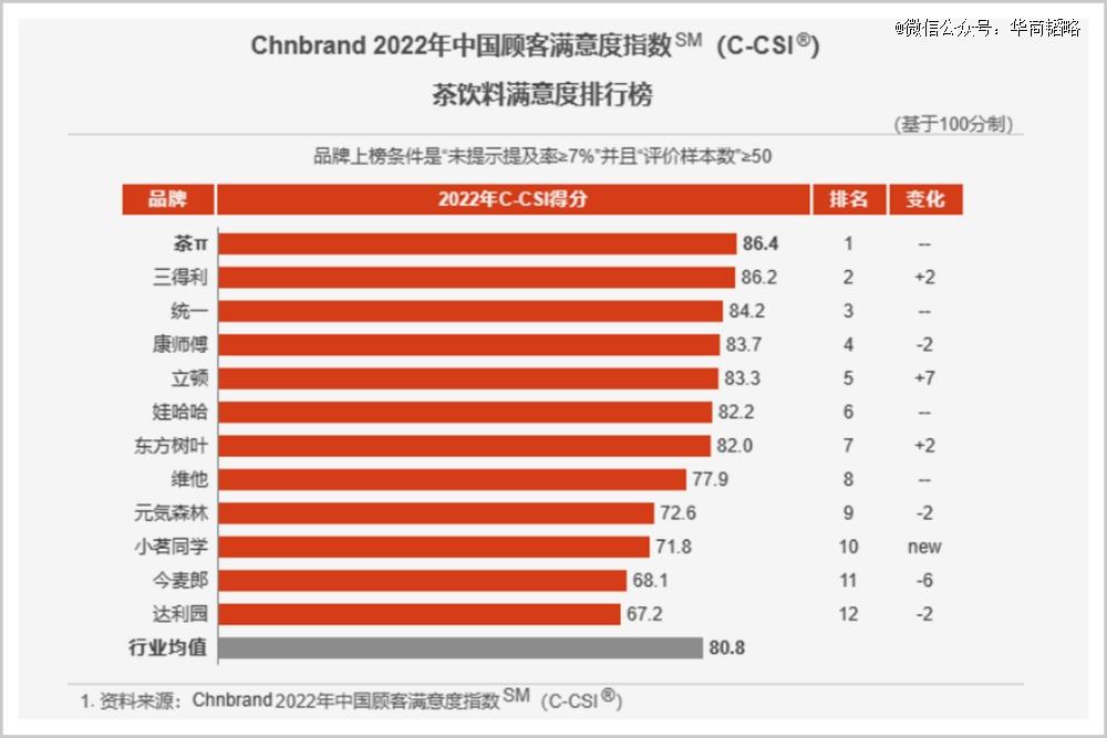 在Chnbrand发布的2022年中国茶饮料满意度排行榜上,三得利高居第二名。