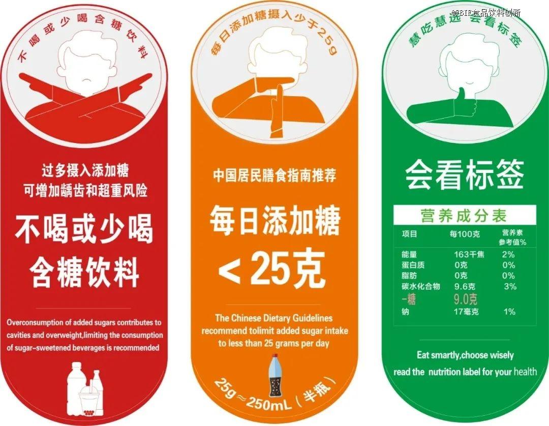 当这个三色标签不是为每一个饮品定制张贴,而是由整个含糖饮料专区共同拥有时,红橙绿标签更像消费倡议,而非消费建议。