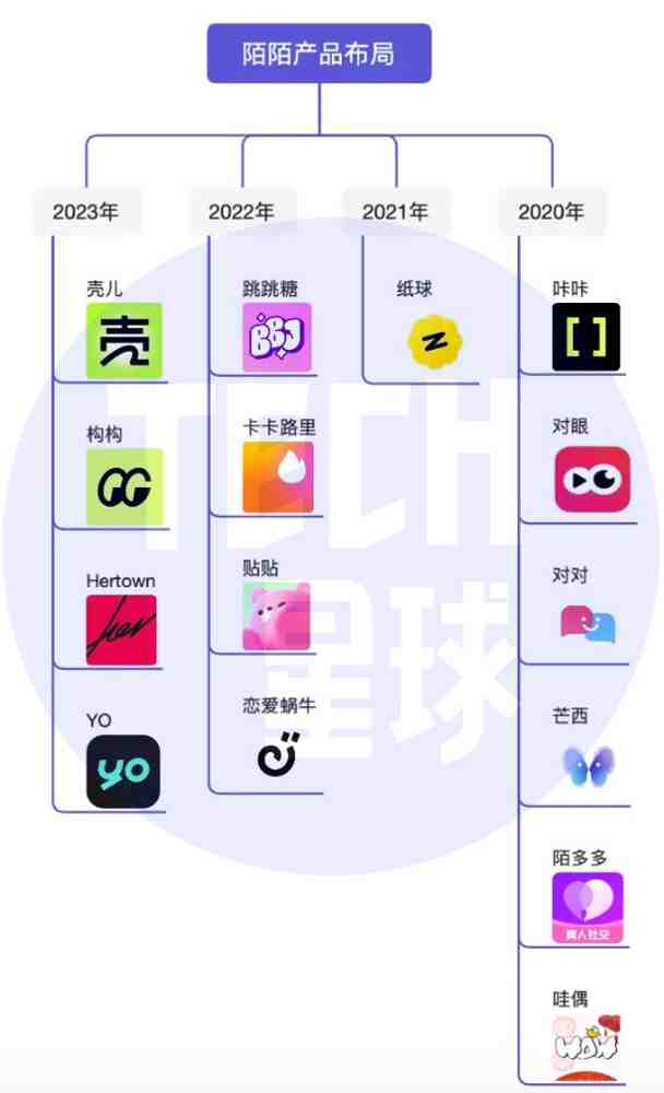 图注:Tech星球遵守悍然原料摒挡清算,陌陌正在2020年至2023年上半年推出的新产品。