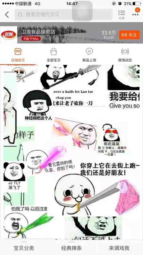 2016年6月8日,1则“卫龙天猫旗舰店被乌”的音讯被强势刷屏,图片中谦屏皆是“凭甚么没有给我收货”战表情包。其热度H , : V $ ^ y K \乃至盖过了事. L f先下考的音讯。