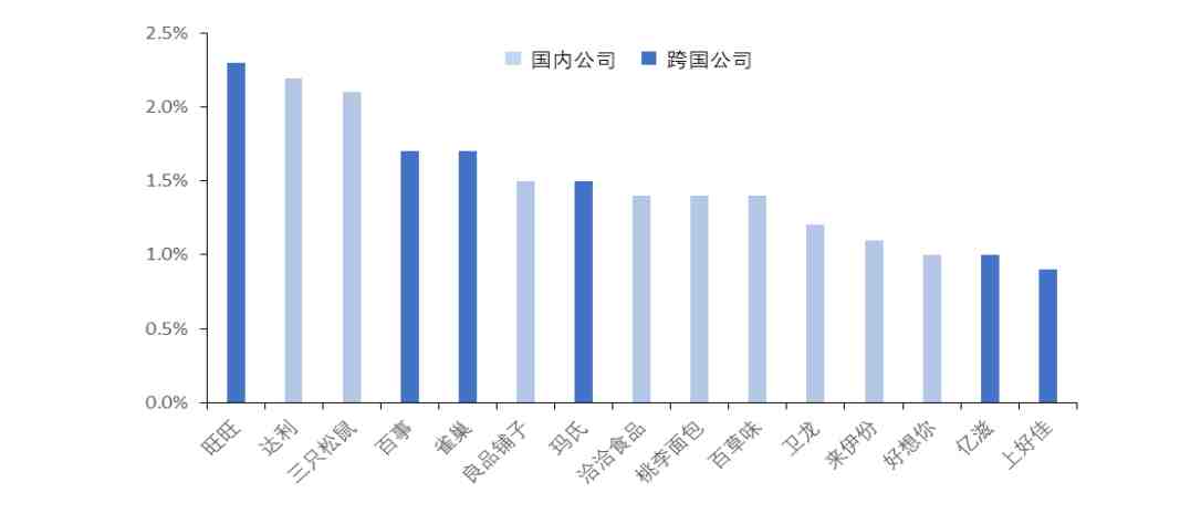 戚闲食品公K * j X 2 % 8 g司国际营支范围B H l { 1 / & c a前15名 数据前导收端:西南证券
