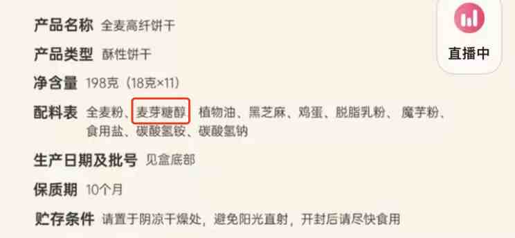 淘宝仄台中1家著名沉主食店展所销卖的无蔗糖饼干配料表
